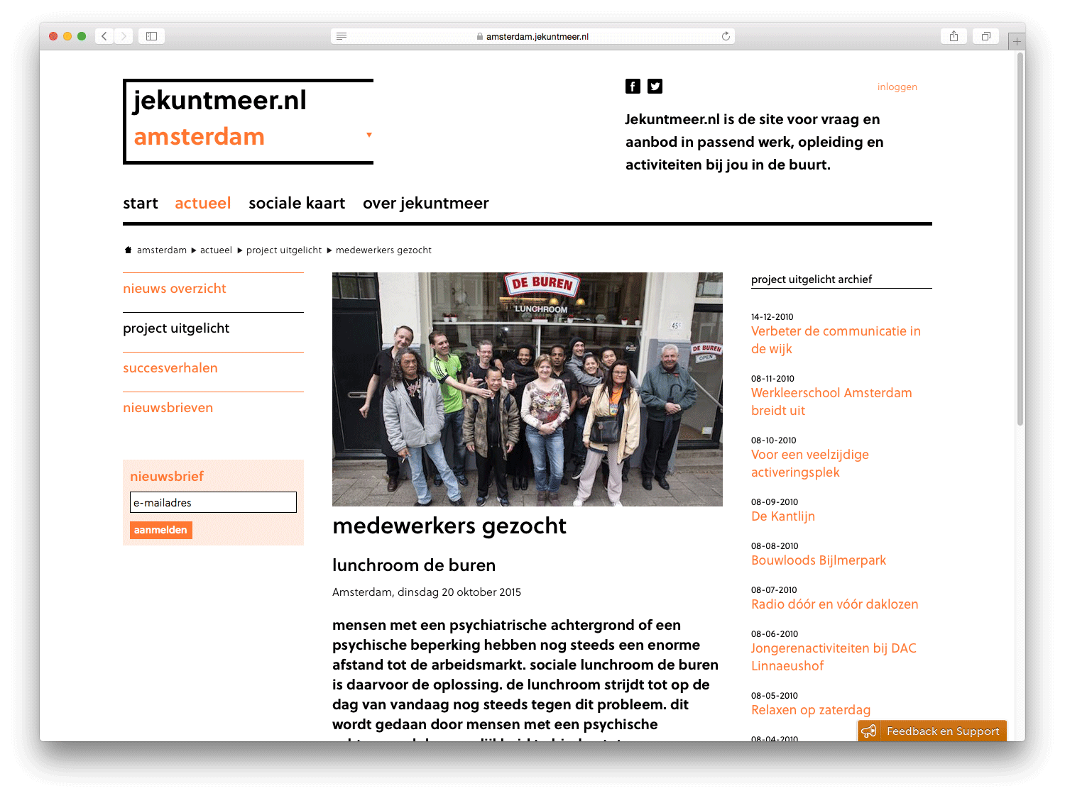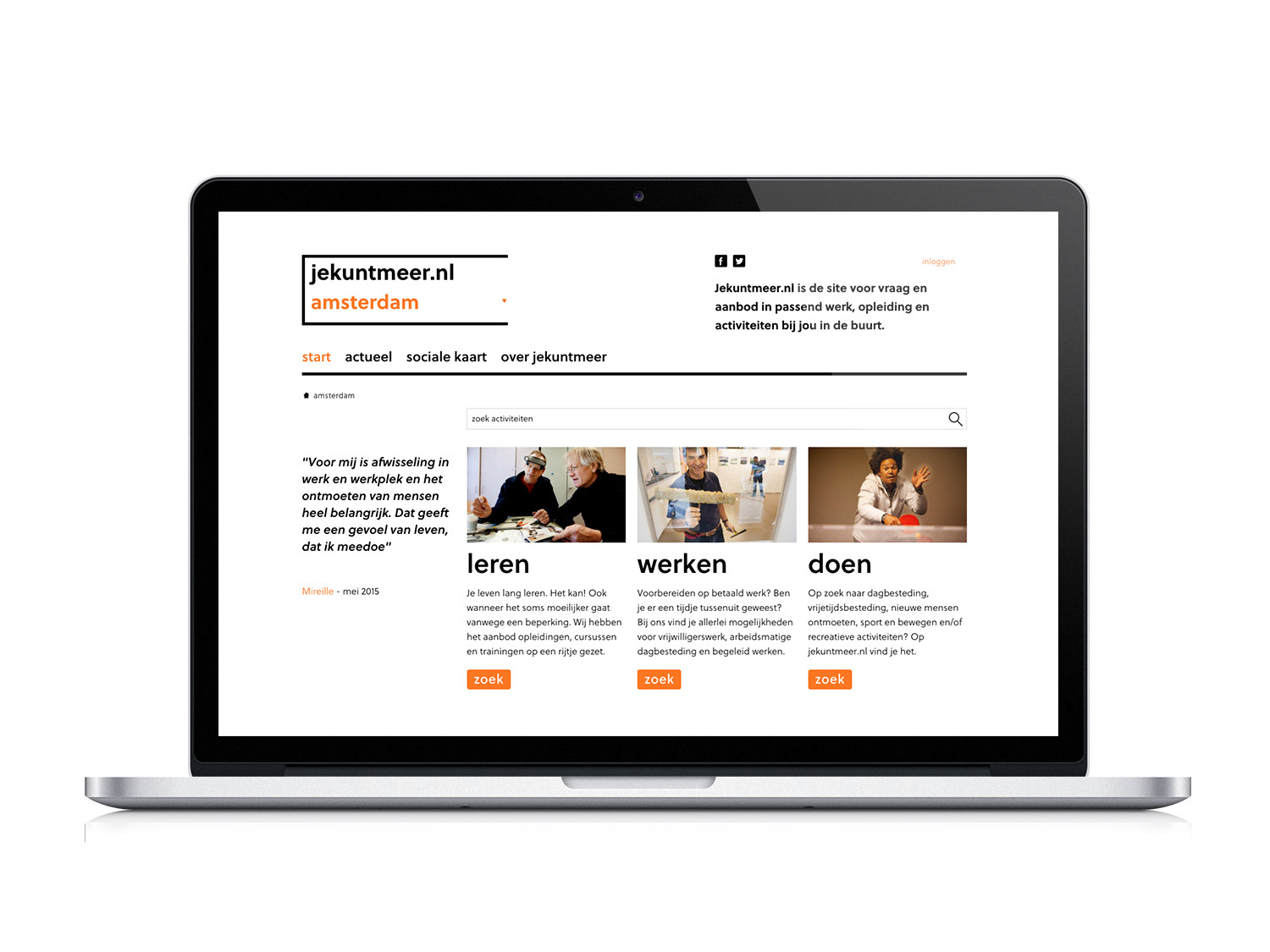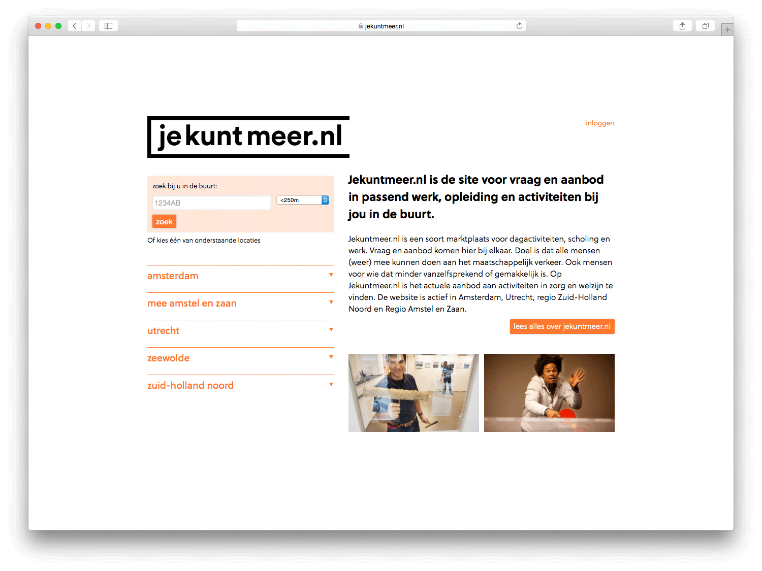 Je kunt meer is a website for people who have difficulties coming back on the job market, or wish to spend their time as a volunteer. Employers can advertise available positions here, and people who are interested in them can apply directly.