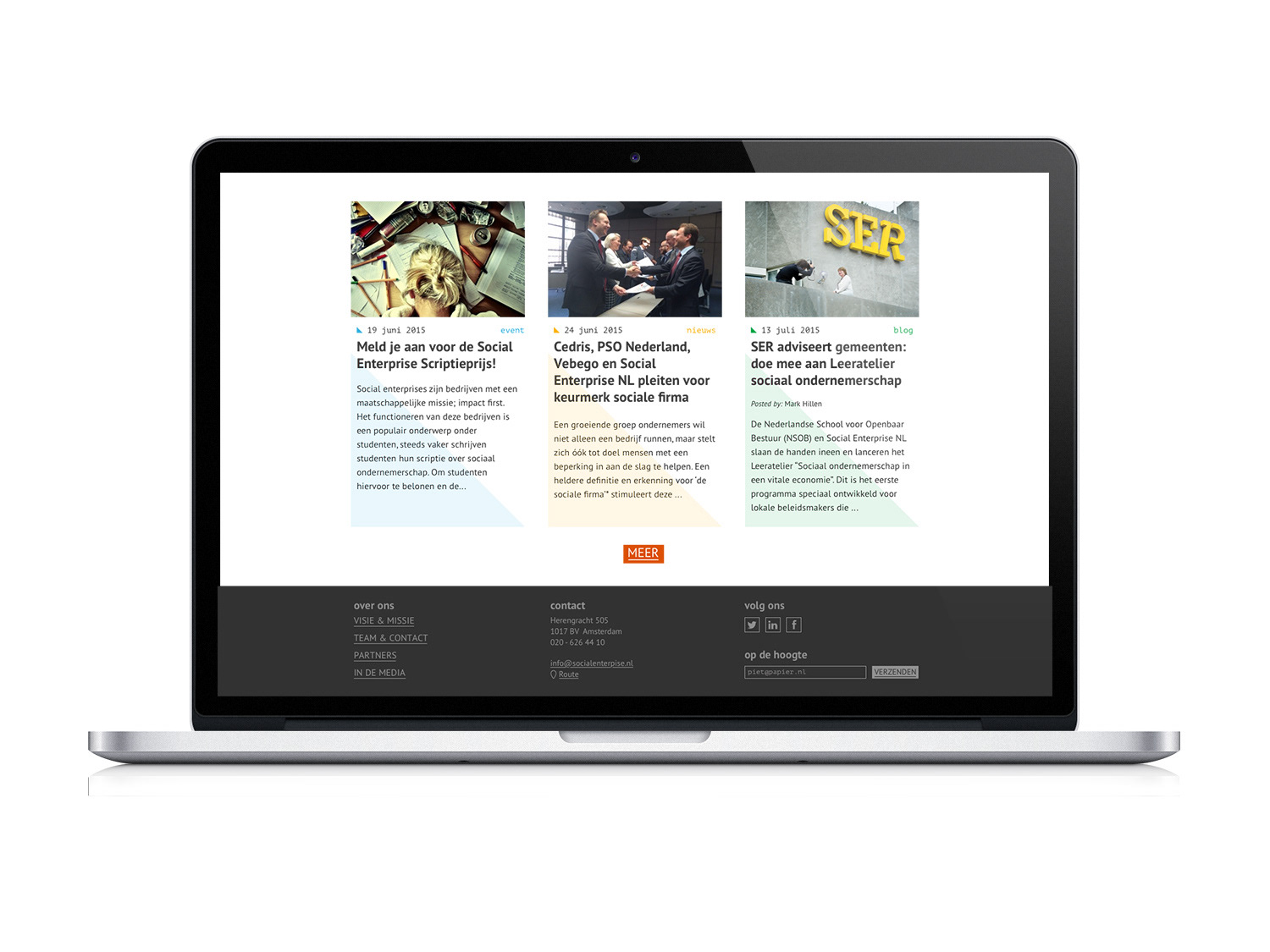 We made a new website and tweaked the identity for Social Enterprise, the community for social and environmental responsible companies in the Netherlands.