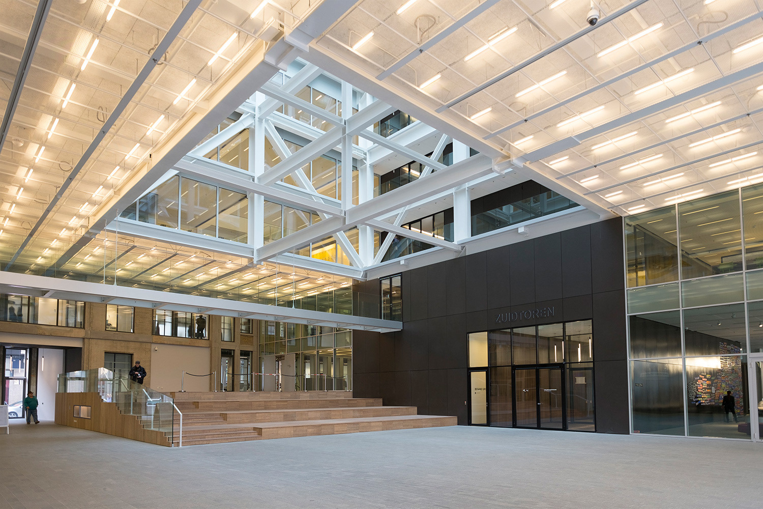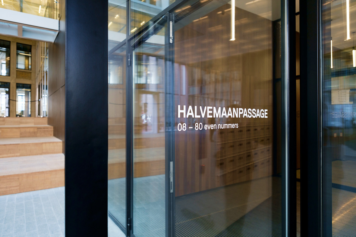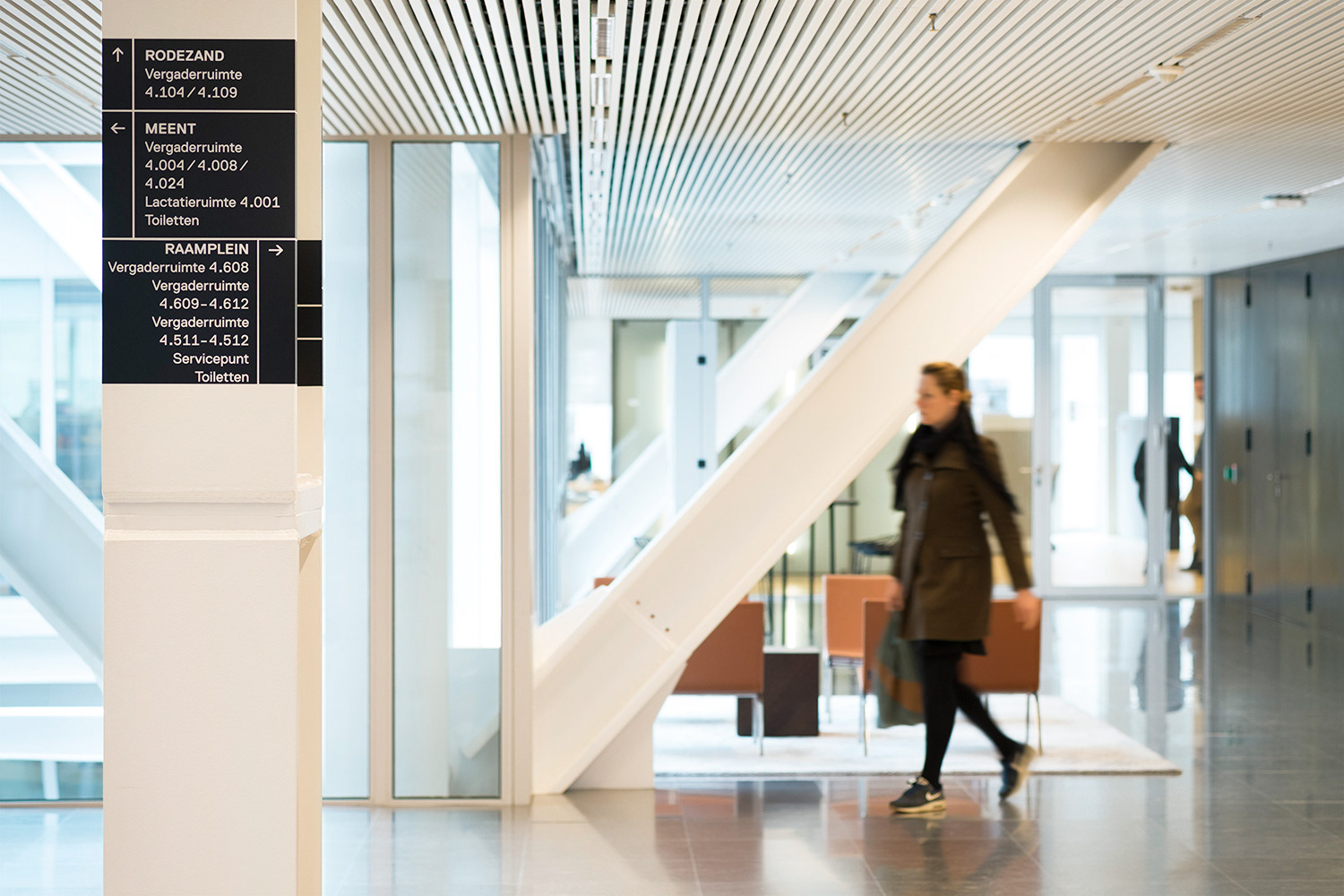 We teamed up with Rem Koolhaas' OMA, the architects of Timmerhuis to design the wayfinding system for the impressive Rotterdam building. Photography: Wim Hanenberg.
