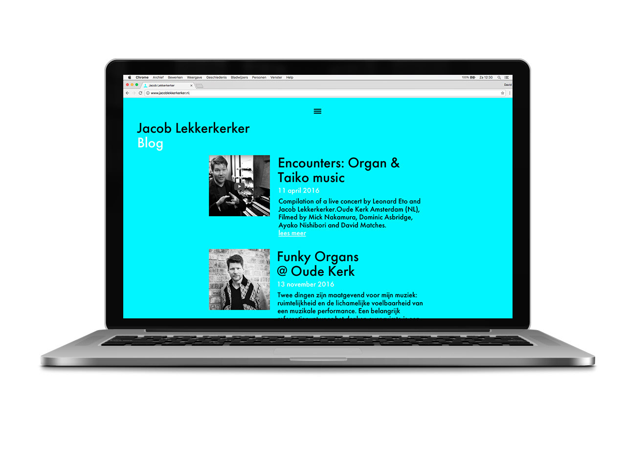 For composer and organist Jacob Lekkerkerker of the Oude Kerk in Amsterdam we made this typographic website.